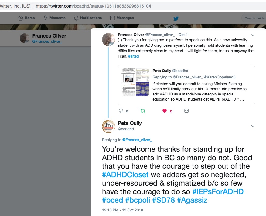 Thanks @Frances_oliver I hope other school board Trustees in Fraser-Cascade will follow your lead and commit to asking BC Education Minister Rob Fleming when he will fulfil his promise to ADHD students add ADHD as a stand-alone category in special education that he made more than 10 months ago (December 4th, 2017).
