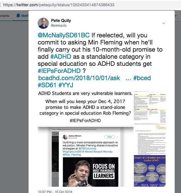 @McNallySD61BC If reelected, will you commit to asking Min Fleming when he’ll finally carry out his 10-month-old promise to add #ADHD as a standalone category in special education so ADHD students get #IEPsForADHD ? https://t.co/zRe6pQEmYY #bced #SD61 #YYJ pic.twitter.com/guf4kaf6TX